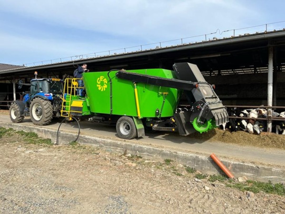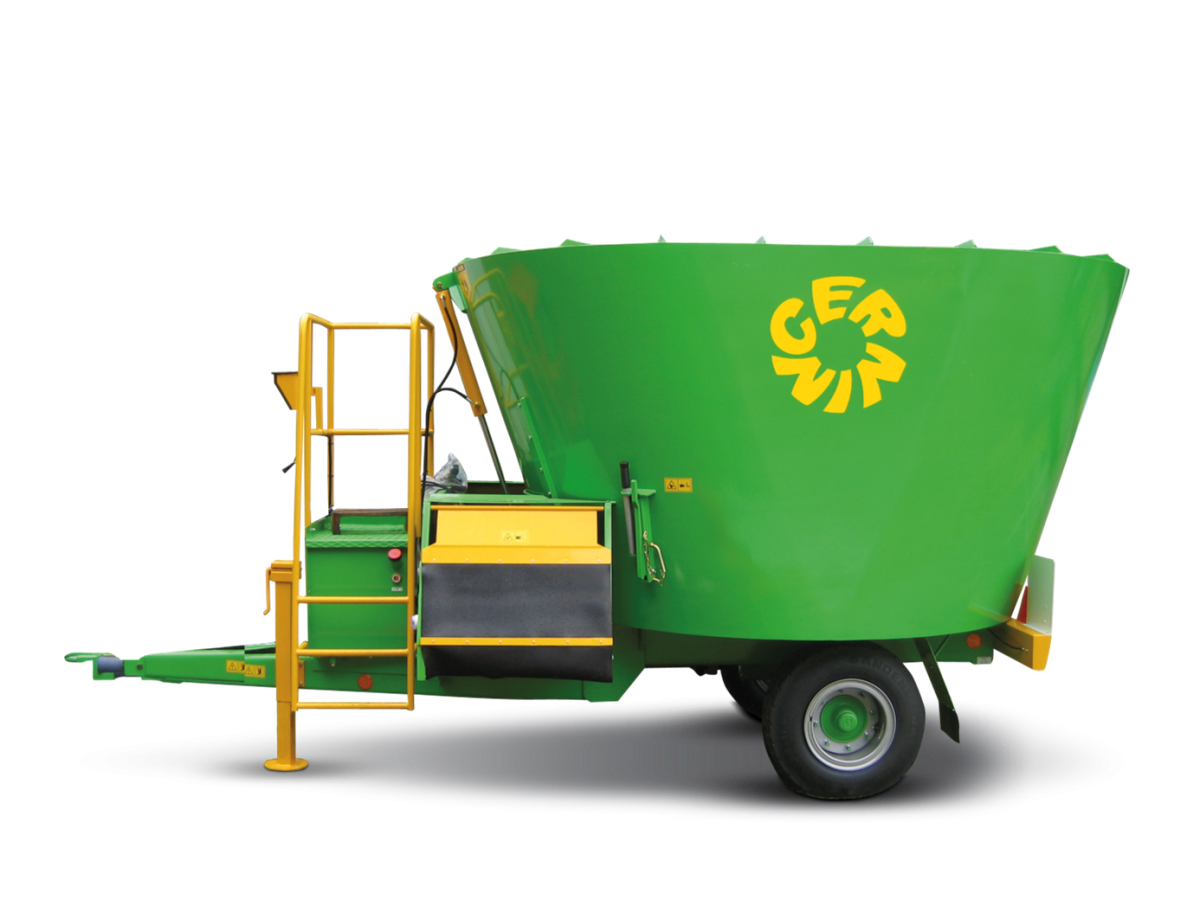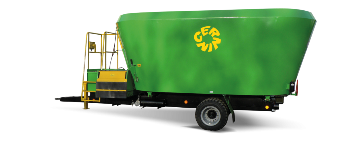 The vertically arranged mixing auger is equipped with special sabre-shaped knives that ensure fast cutting of all components, while the adjustable counter-knives make it possible to achieve the desired feed length. CERNIN feeding wagons are suitable for processing both round and square bales, and thanks to their heavy-duty vertical augers, they ensure efficient shredding, thorough mixing, and the creation of a homogeneous ration.